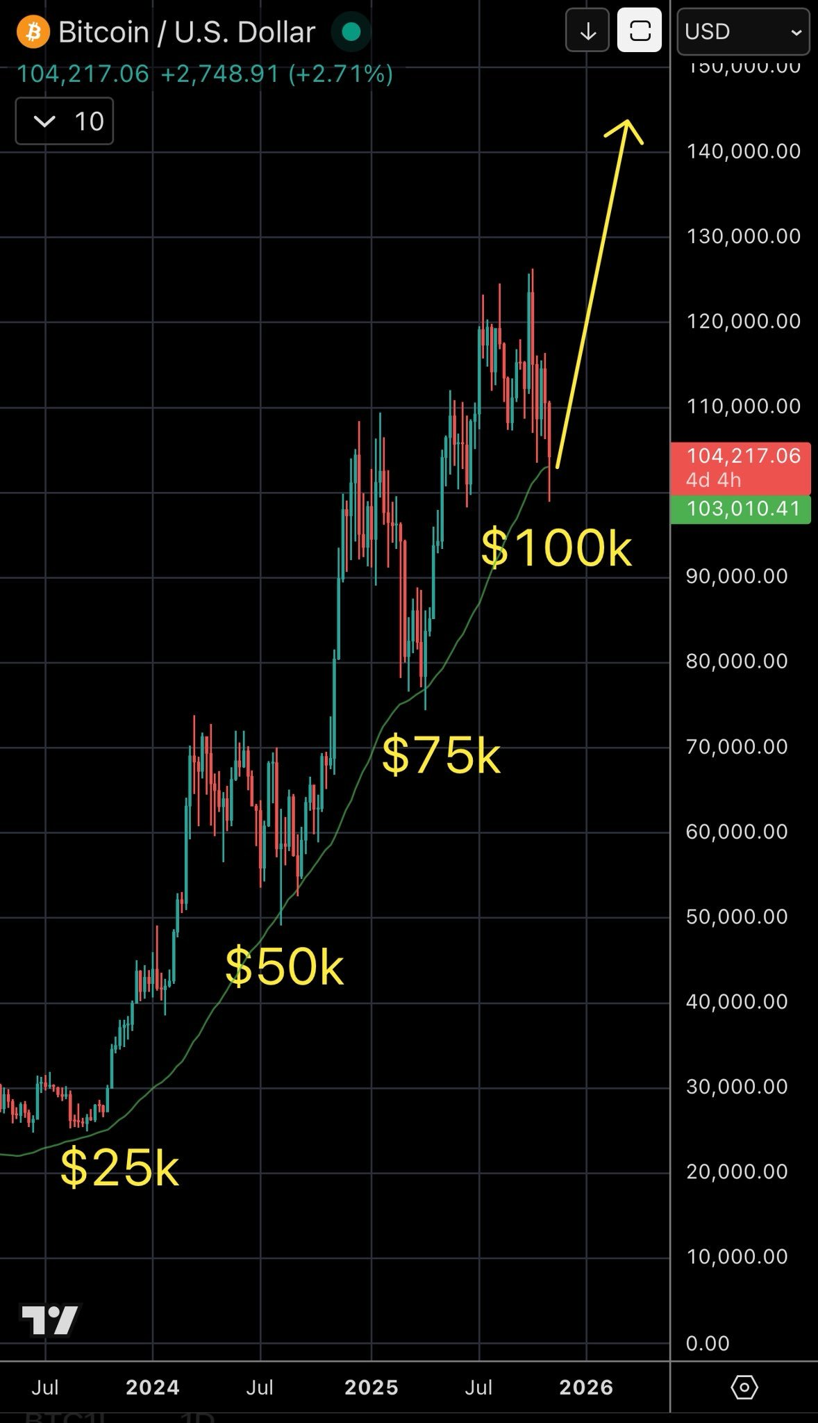 Bitcoin has been moving up in stair steps.