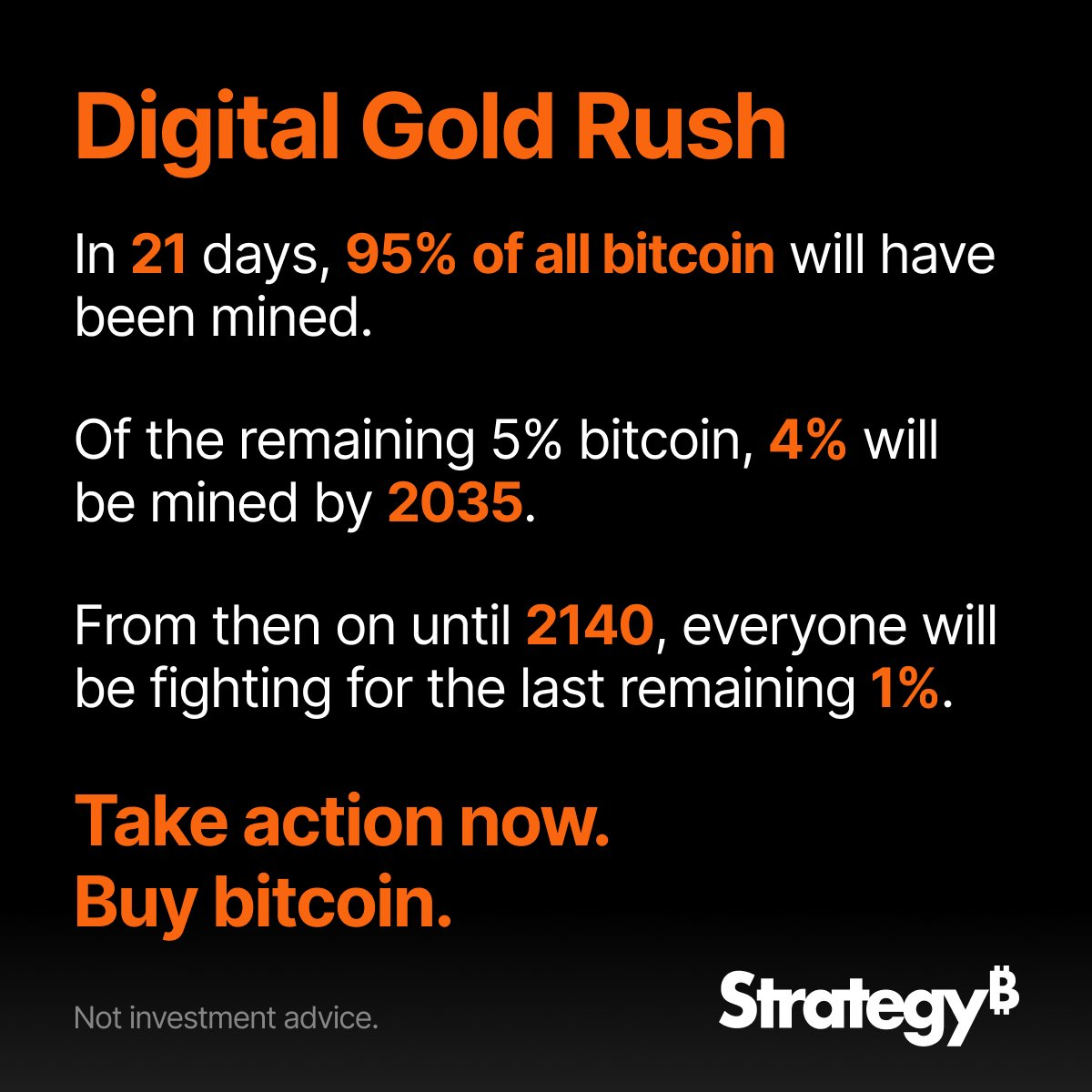 In 21 days 95% of the entire bitcoin supply will have been mined.
