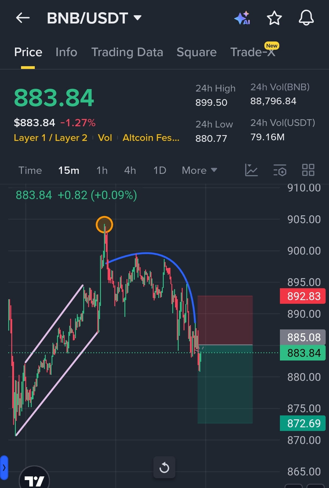 $BNB lost its rising structure and failed to reclaim the $890 zone, signaling short-term weakness with downside continuation possible if buyers don’t step in quickly.