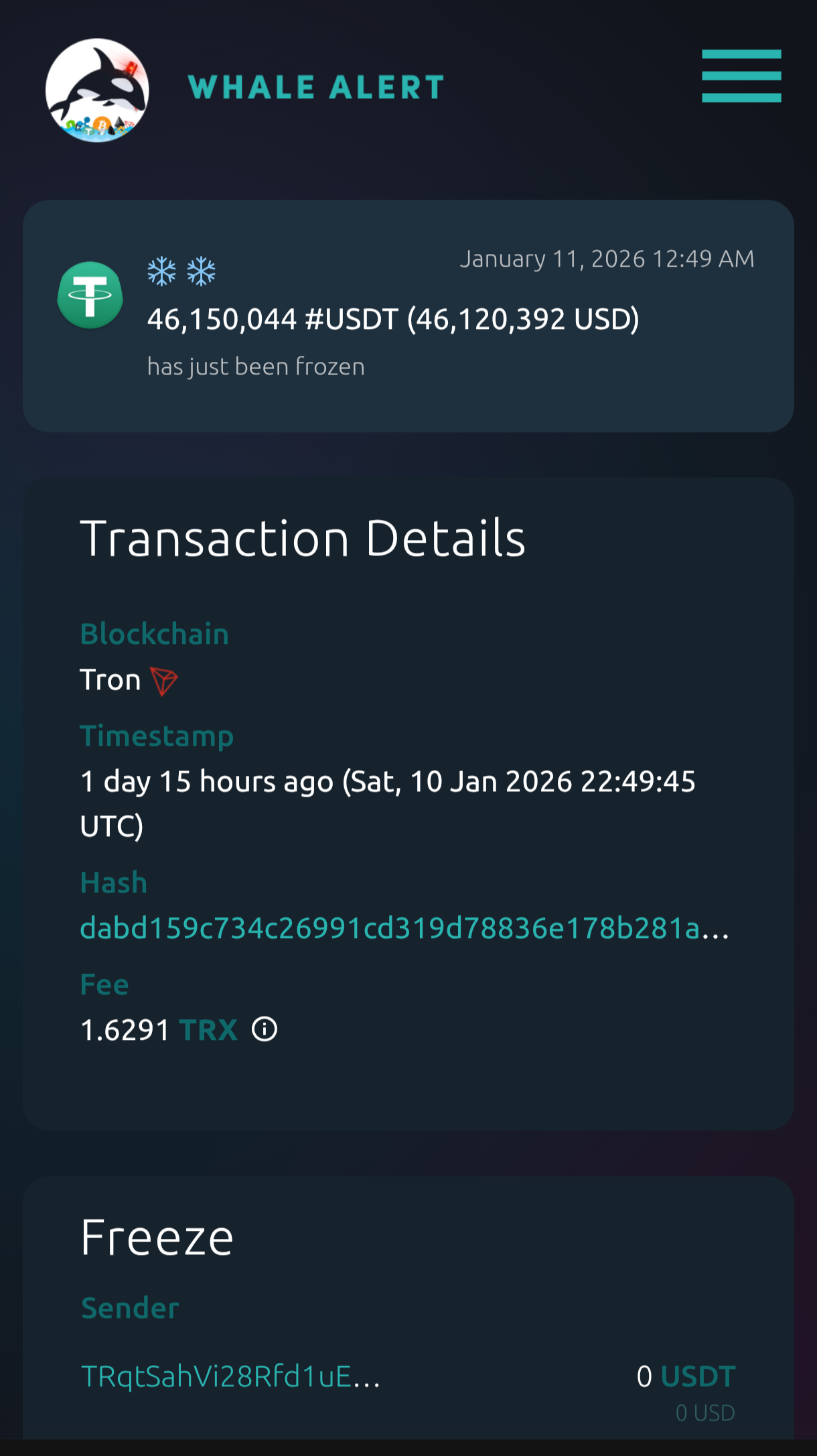 Several news sources reported millions of USDT frozen on many Tron wallets.