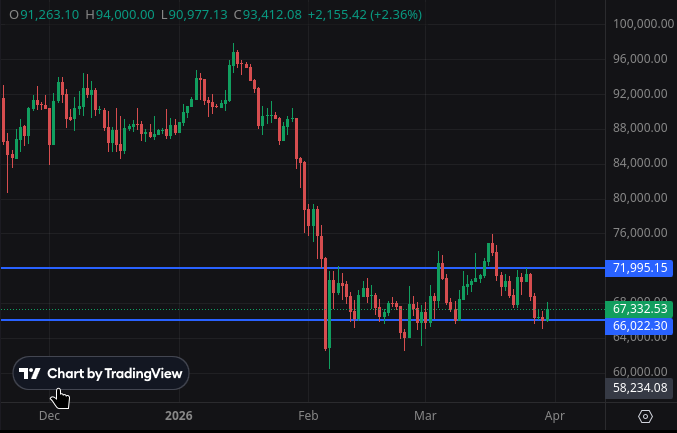 Вже на чотирьох годинах краще видно, як знову нащупали підтримку на $66 тис. за монету. Шо тут сказать іще, ну поки шо побовтаються в бік, а щоб добре двинула кудись ціна, то має щось відбутись вагоміше. Бо місцина не проста, з одного боку падать просто так не дадуть, бо там якісь історичні рівні й області покупок. З іншого, прям немає особилвих причин рости. Та й попри покупки самого біткойна, які не так давно перевели в холд, на 1.2 млрд, плюс ще щось на 300-400млн, сам ринок криптоактивів, цих альткоїнів десь розгубив по дорозі 300-400млрд. капіталу.