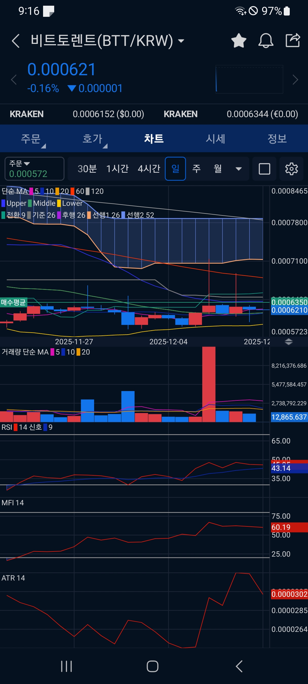 제공하신 스크린샷 기준으로 BTT/KRW는 최근 거래량 스파이크 후 1시간 차트에서 횡보·정리 국면에 진입했고, 단기 모멘텀은 일시적 회복 신호를 보이나 상위(4시간·일봉) 저항이 남아 있어 거래량·모멘텀 동행이 확인될 때만 규칙적으로 진입하는 보수적 접근을 권합니다.