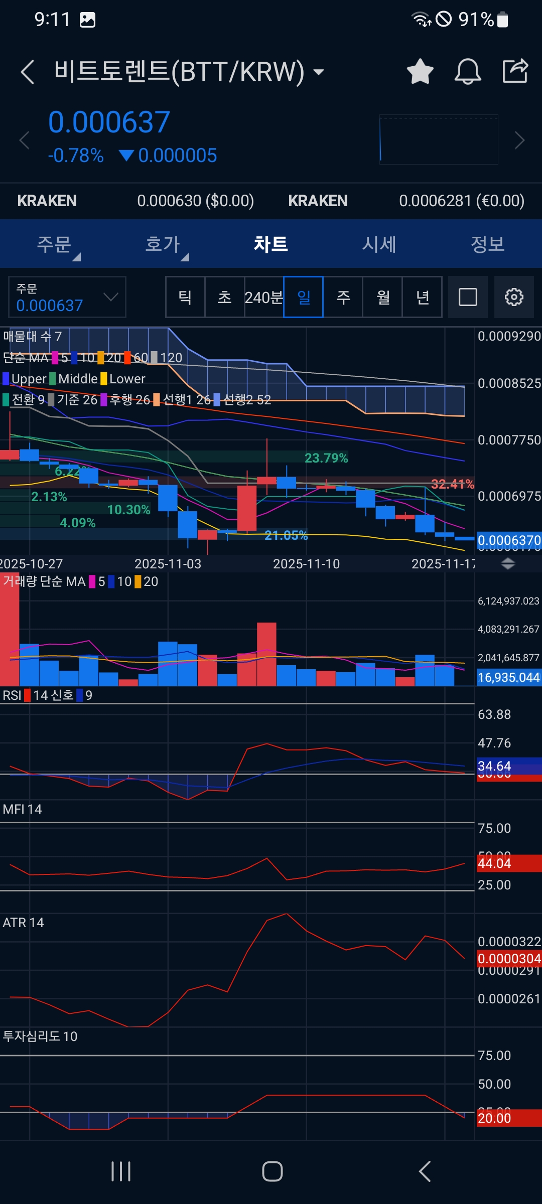 2025-11-18 오전 스냅샷)을 기준으로 비트토렌트(BTT/KRW) 차트를 단계적으로 절차적 사고로 꼼꼼히 분석해 드리겠습니다. 분석은 요약 → 다중시간대(60분·240분·일봉·주봉) 순서로 진행하고, 핵심 지지·저항, 매매 시나리오, 리스크 관리와 즉시 실행 권장사항을 포함합니다.