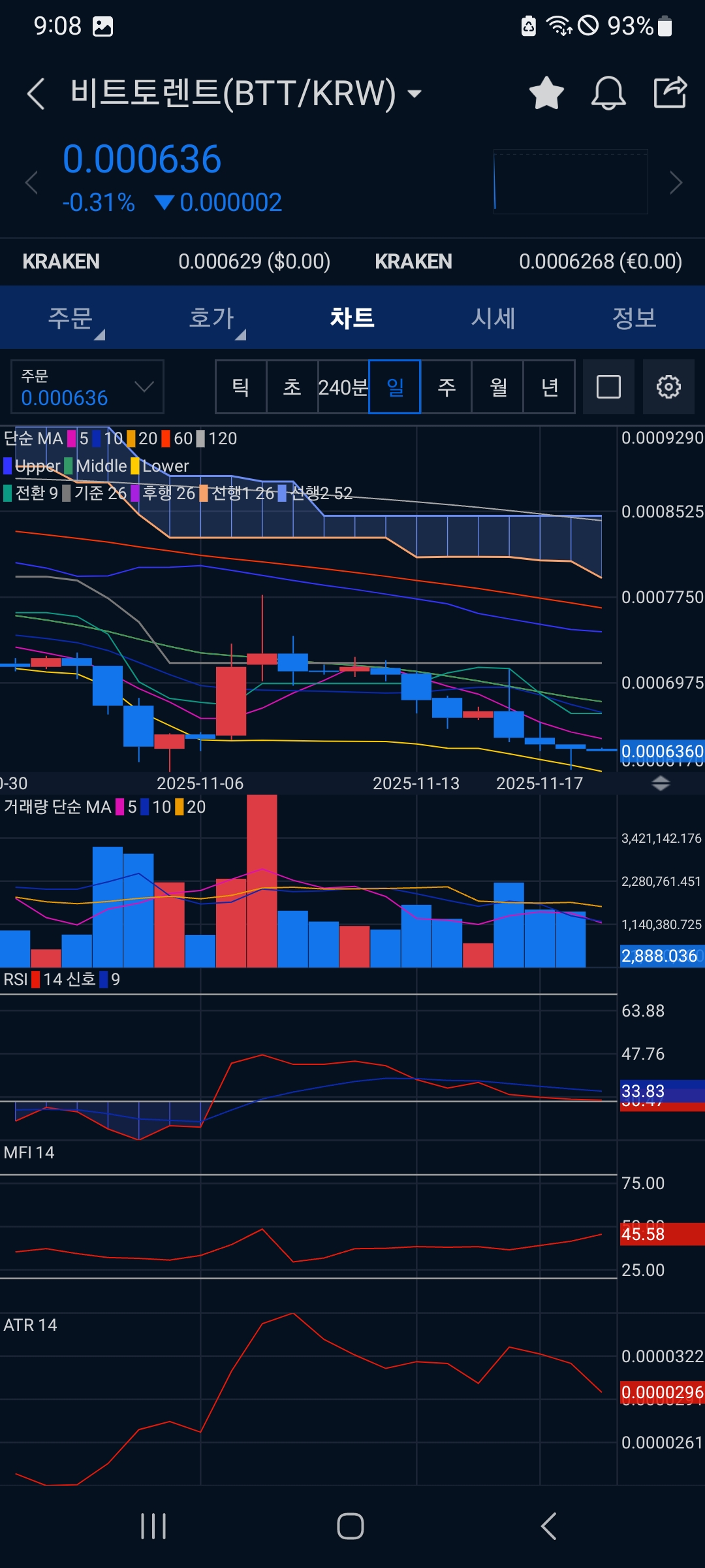 2025-11-19 오전 스냅샷 기준 BTT/KRW 차트를 다중시간대(60분·240분·일봉)로 단계별 절차적 사고로 꼼꼼히 분석한 결과 — 단기 저점권에서 소폭 회복 시도, 중기 저항 우위 지속, 일봉상 추세 전환 신호는 미약합니다. 돌파 확인 전까지는 소규모·분할 접근이나 관망이 합리적입니다.