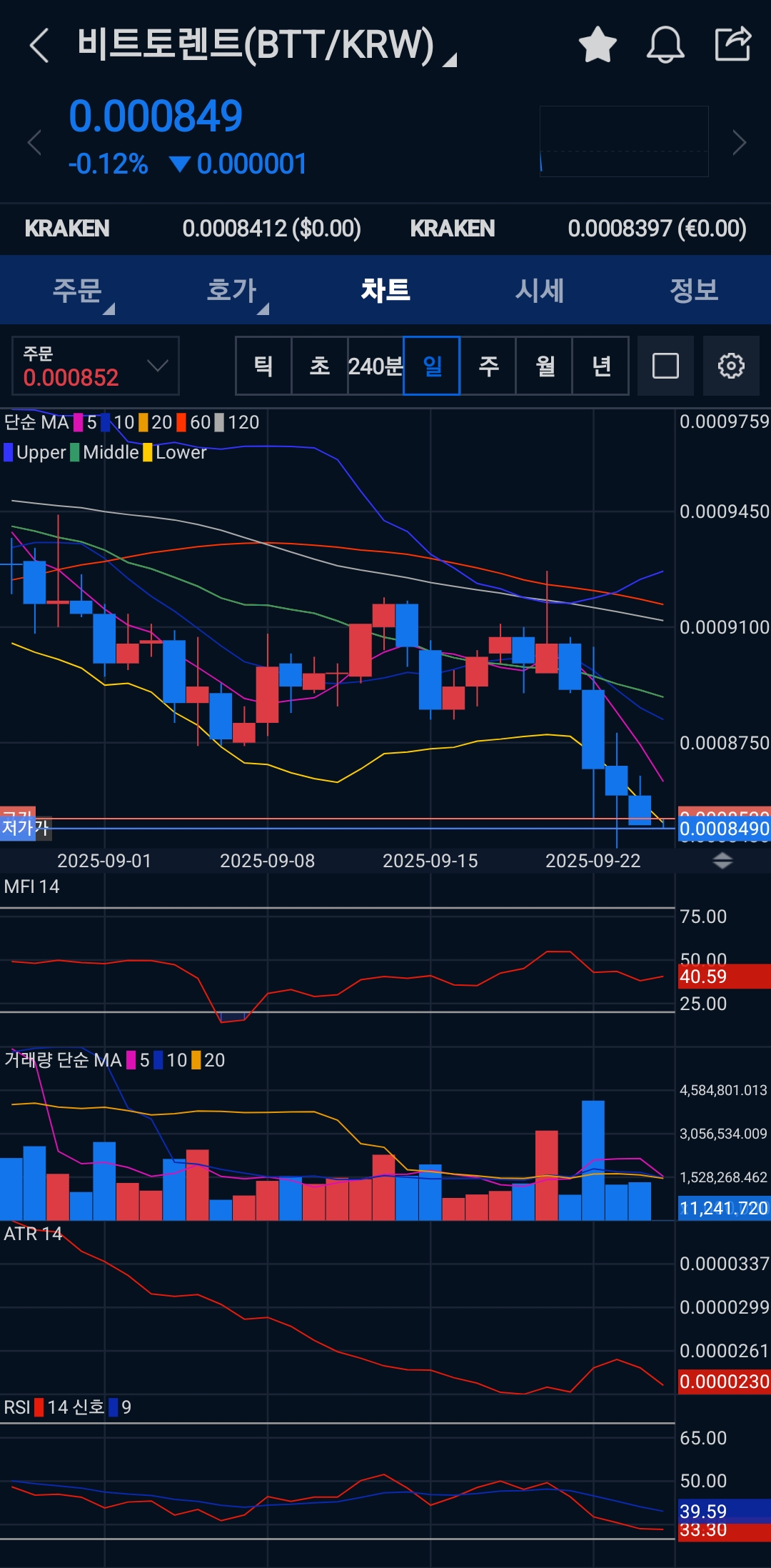 비트토렌트(BTT/KRW) 차트를 절차적으로 분석드리겠습니다 (2025-09-25 기준)