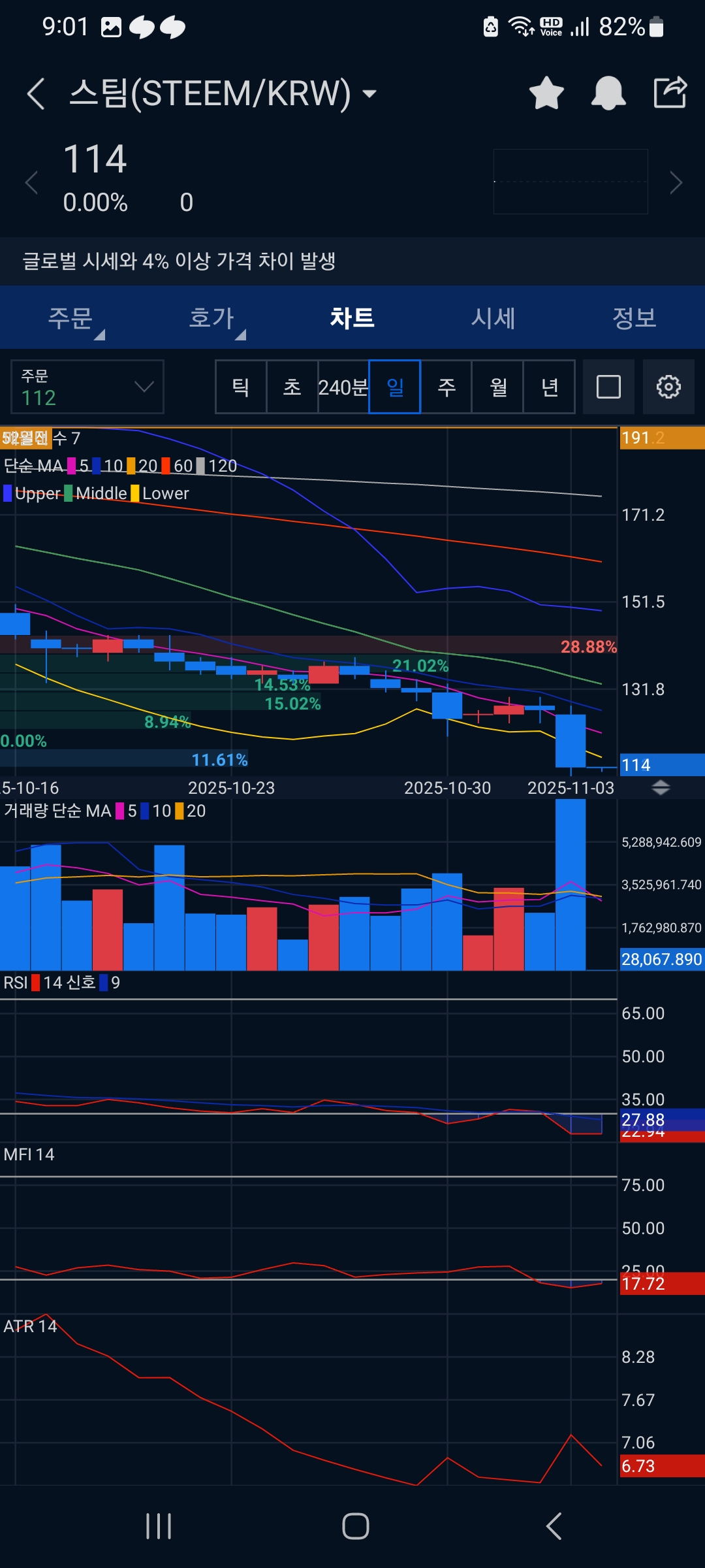- 전반 결론: STEEM/KRW는 상·중·단기 모두 하방 압력이 우세한 상태이나 최근(60분·일봉)에서 거래량 급증과 함께 단기 저가 다지기 신호가 관찰됩니다. 상위추세(주·월) 전환 확인 전까지는 관망을 우선하고, 단기 진입은 거래량·지표(연속 양봉 + RSI/MFI 개선) 동반 시 소규모·엄격 손절로만 접근하십시오.