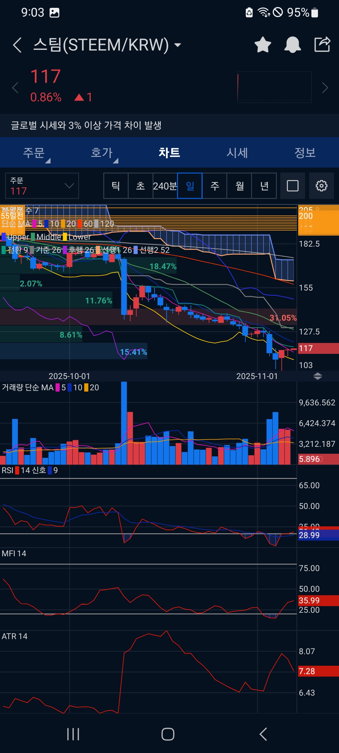 - 일봉: 전반적으로 하락 추세가 지속됐고, 최근 반등은 있으나 일봉 관점의 저항대가 여전히 강합니다.