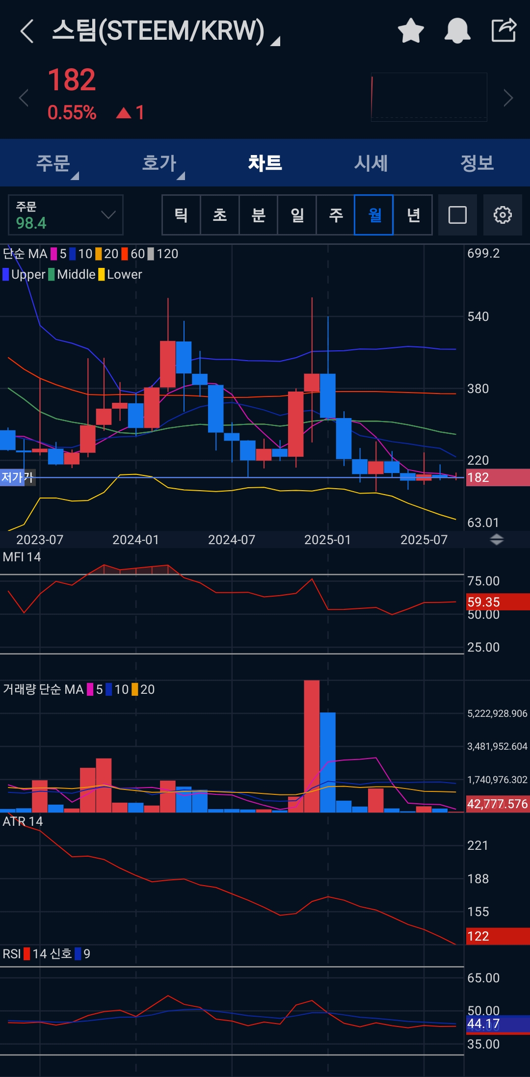스팀(STEEM/KRW) 차트를 절차적으로 분석해 드리겠습니다