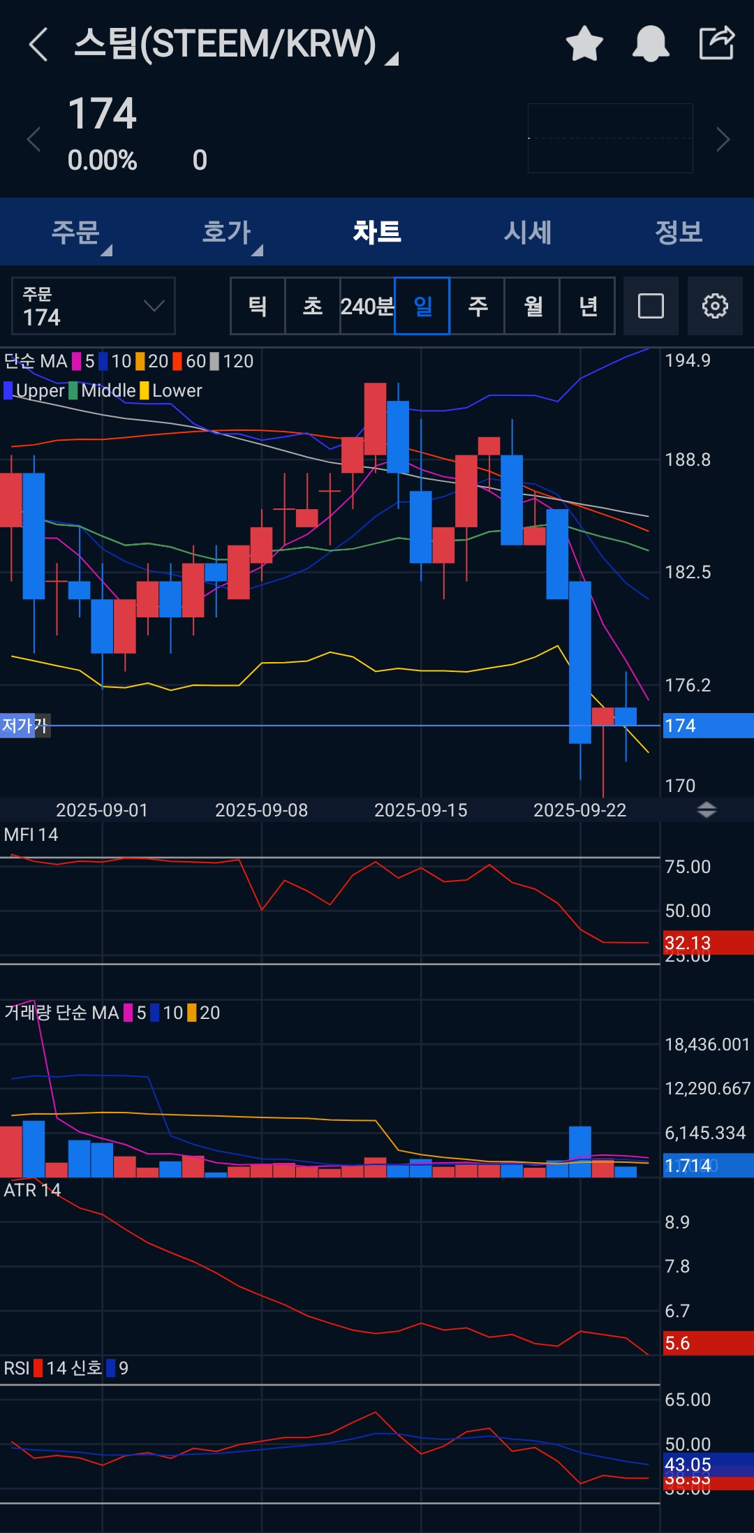 스팀(STEEM/KRW) 차트를 절차적으로 분석드리겠습니다 (2025-09-25 기준)
