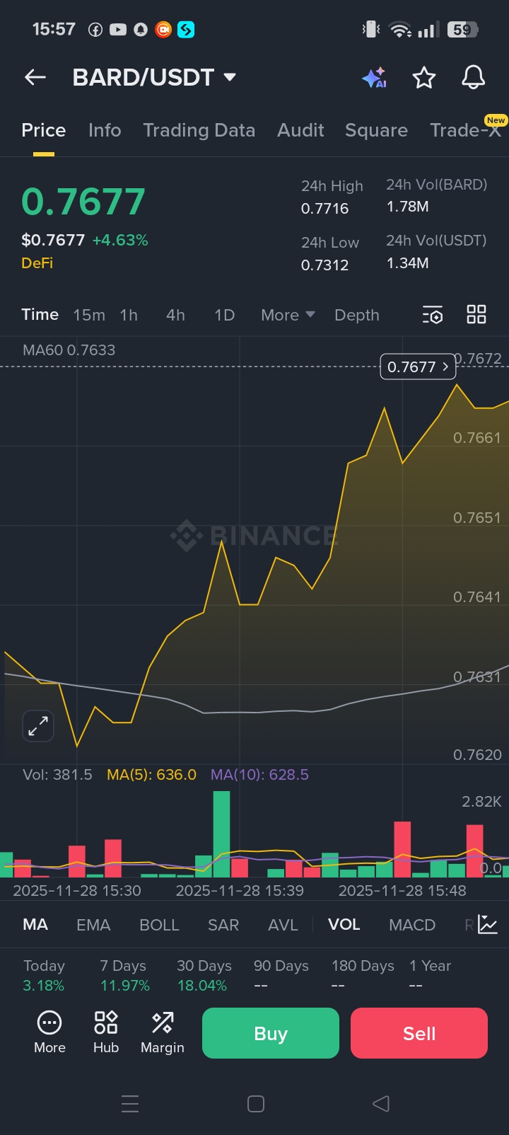 $BARD is pushing strongly above the ascending trendline on the 15M chart, showing consistent buyer momentum. A clean breakout above 0.767 can trigger a quick move toward the 0.778–0.785 zone.