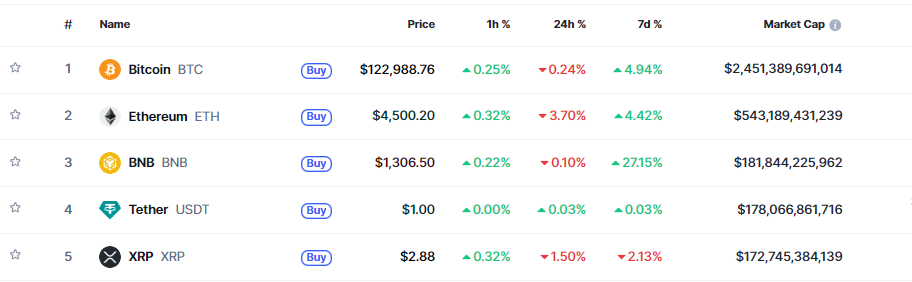 This is an important snapshot that I would like to share with you all, and I will explain why. I would like to bring your attention to a few coins, which are like BNB and xrp in the crypto market. You need to check for the 3rd slot and which coin is sitting there, and the coin which you can see in the slot is none other than BNB, which is a very popular coin in the crypto market this time.
