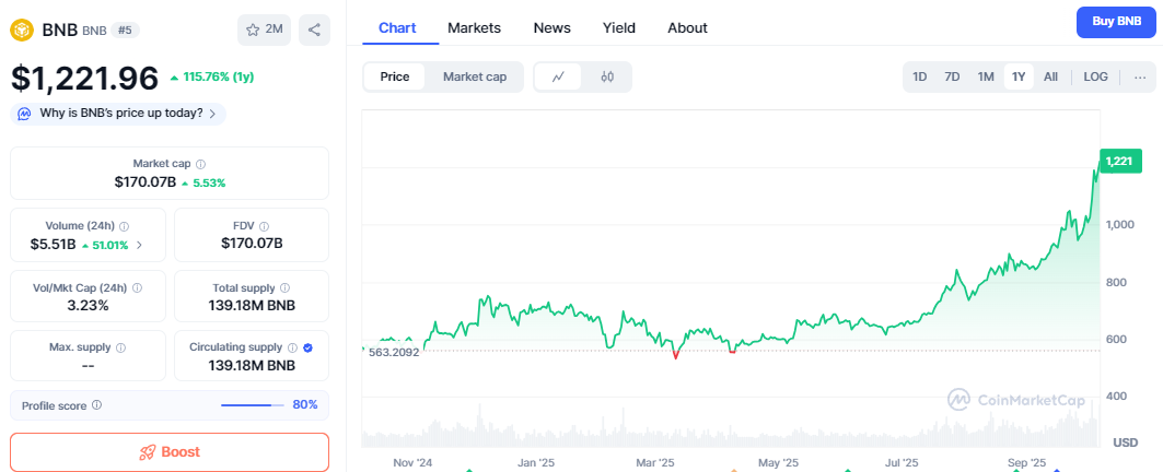 Price for the BNB coin has a good price appreciation in the last few weeks, and if we go by the one-year window, you'll be able to see that the price for this coin has gone up by more than 100% which is amazing and if you want to know the exact growth on the price, its 115%. I mean, the value of this coin has more than doubled, which is amazing, and people who invested in the coin one year back must be very happy.