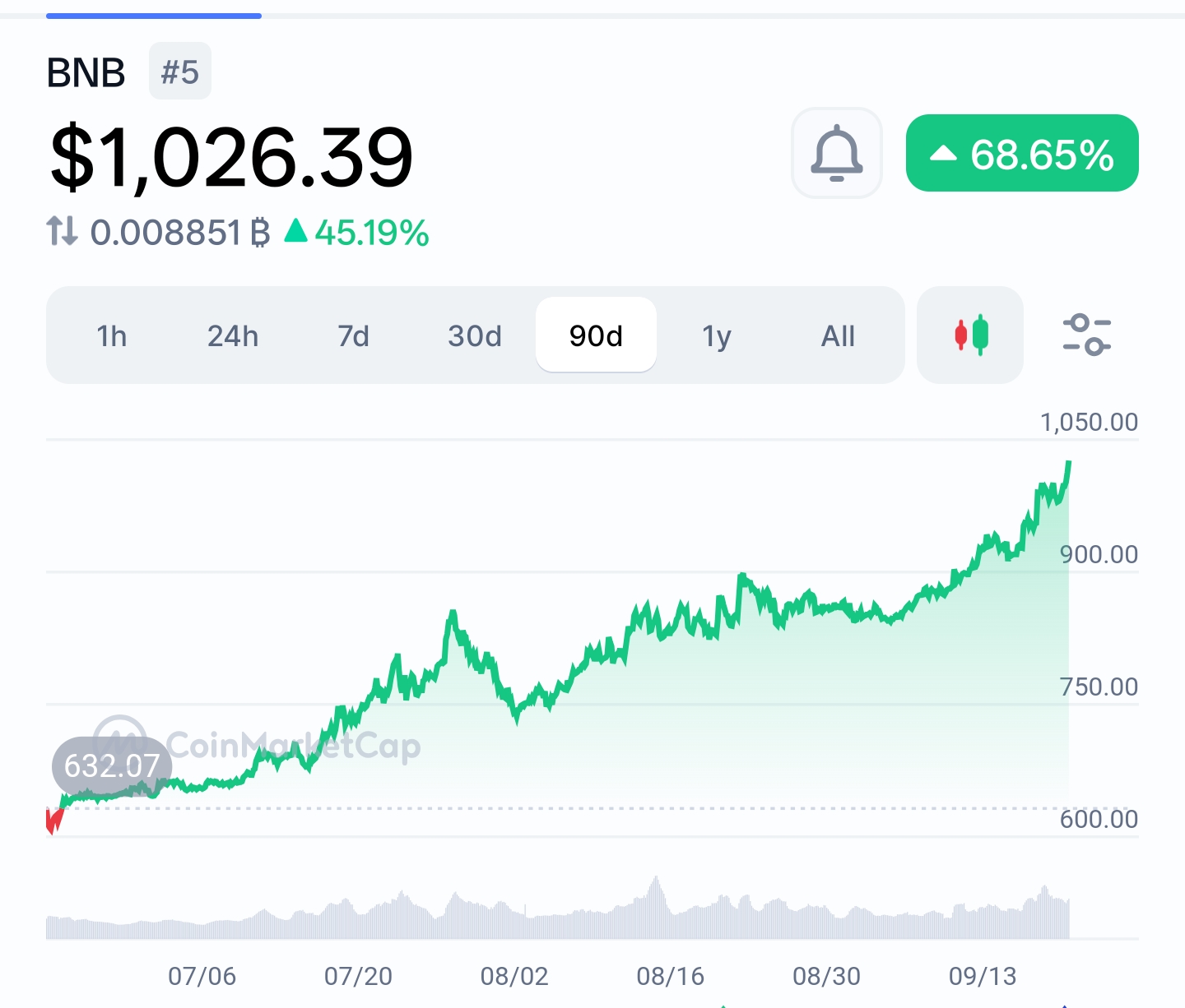 It is good that the price of bnb coin is trending above 1000 US dollars and this is a big milestone for the coin because there was a time when this coin was available for less than hundred dollars and now the same is available beyond $1000. I have also seen the coin for a value of $10 and the current price is surely a Great value appreciation on the coin which shows that it is a solid project and probably it will grow even more.