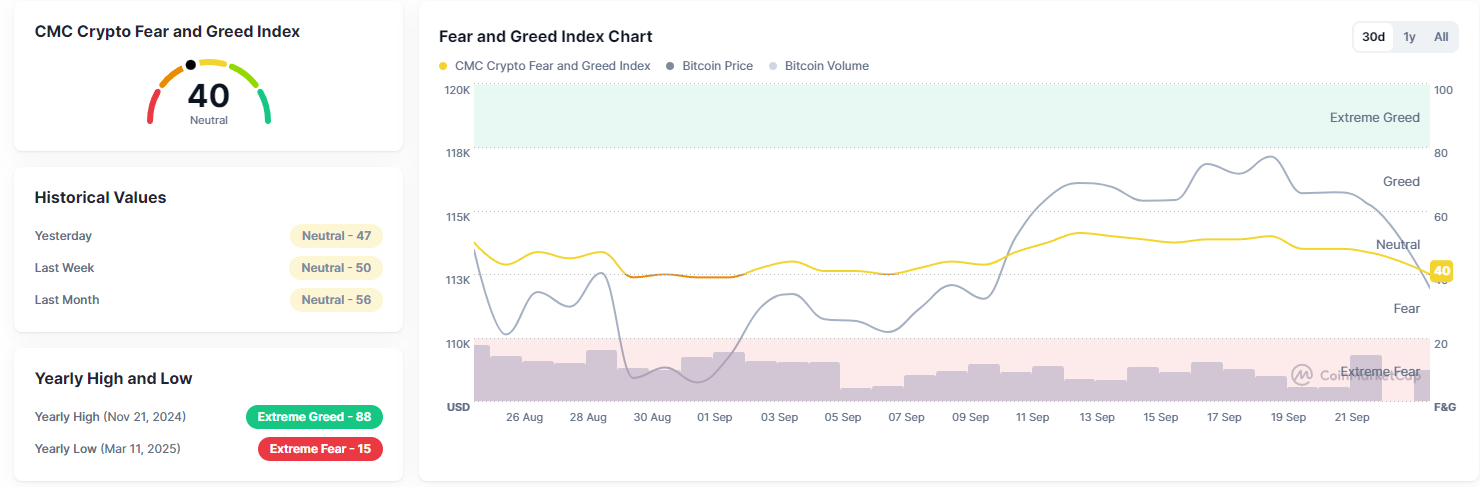 Currently, the index is showing as 40, which is neutral and in this number, we cannot say that the market is bearish or bullish because the sentiments are kind of neutral, where people are waiting for some sort of opportunity in the market to buy or sell. And that is the stage where we can call it a neutral market sentiment.