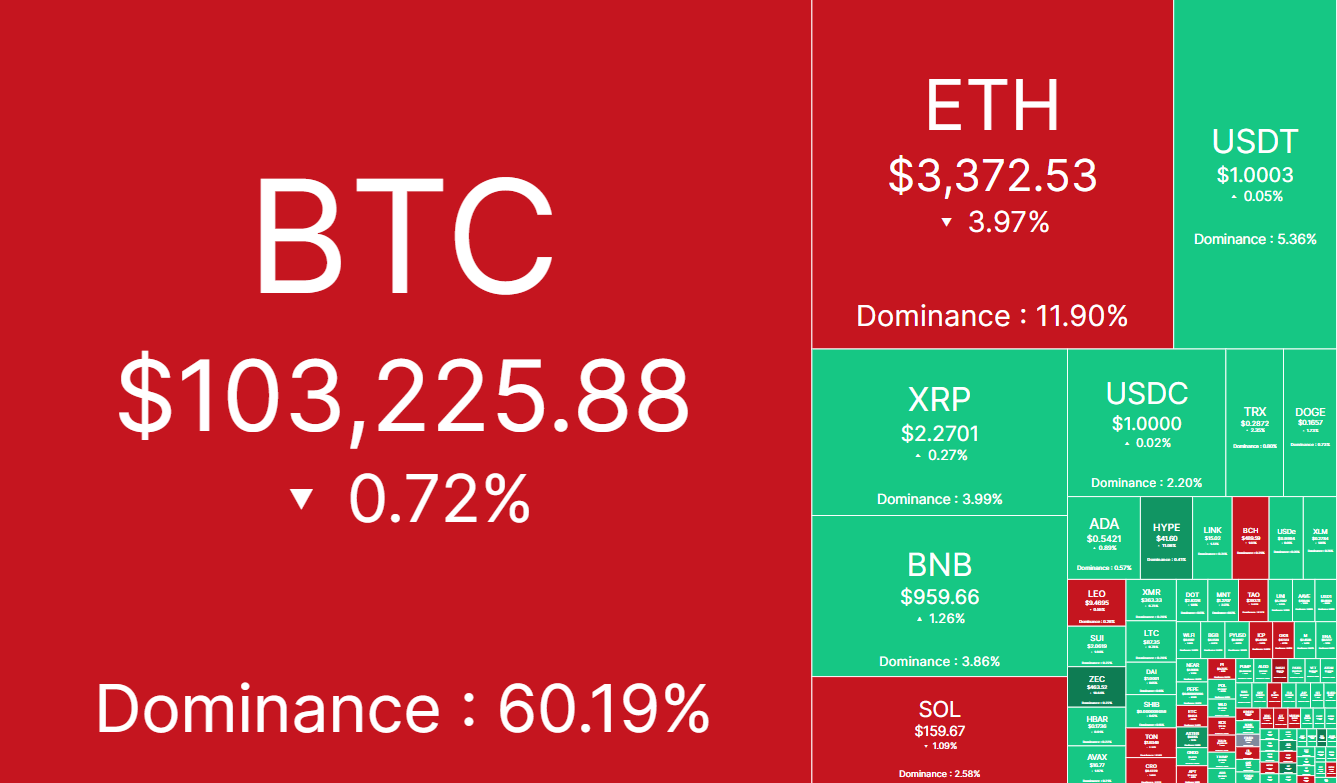 The current situation of the crypto market is not good, and the heat map shared in this post can give you a glimpse of that, where you will see most of the coins are down now. Generally, in this market, things work like this that the prices are dropped by a larger percentage on a day and on the next day, there is a slight increase. So you can see the colour as green, but actually it is not green.