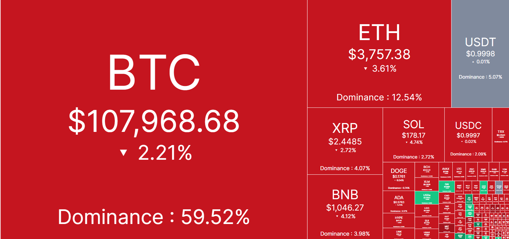 For example, this time the market is down again, and we can see Bitcoin going below 110K US dollars. Overall the Bitcoin has not shown a bigger dump on its price, but the altcoins are surely impacted, and as of now, it's not known what the reasons are behind why it is happening, but it surely looks like there is a lot of fear in the market, which is why the market is not recovering.
