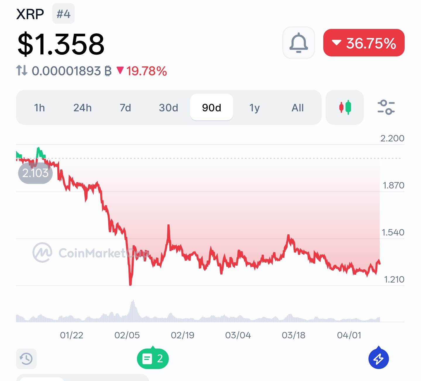 Now if you look at the price for this coin it is currently trading around 1.35 US dollars and in a window of 90 days the prices gone down by over 36% which is concerning but also it is not that much concerning since it is happening because of the market sentiment and it is not just one coin which is impacted instead many other coins are also showing the same sentiments which is there is prices are way down.