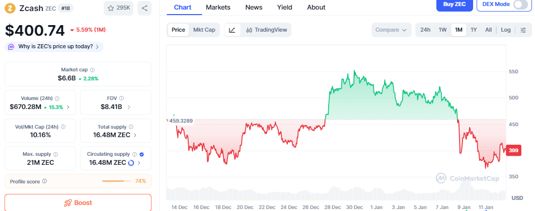 This is a solid project in the market, and in the last quarter of 2025, the coin experienced significant price growth, which undoubtedly brought more attention to the project. Currently, the coin is trading around $ 400 US dollars. Many people like this project because of the hype, obviously. However, it is down, and it is not down because the project is not good enough; rather, it is down because the entire market is affected this way, so when the market is down, the projects are going to get hit on the prices, and it's obvious.