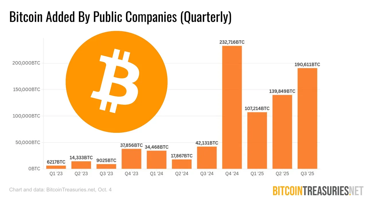 After that, in 2025, the pace continues strong. Every quarter is over 100,000 BTC added. That shows conviction. These companies are not speculating; they are allocating. They understand Bitcoin’s long-term value, its scarcity, and its growing role as digital reserve asset. They know that as more institutions and countries join, the available supply on the market keeps getting smaller.