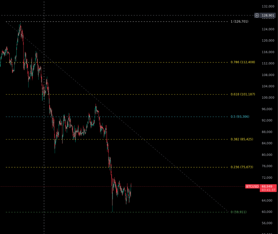 At the moment, the first major resistance sits at $69,990. This level has acted as a psychological and technical barrier, where sellers previously stepped in to defend price action. A clean break above this zone with strong volume could trigger fresh buying interest and short liquidations.
