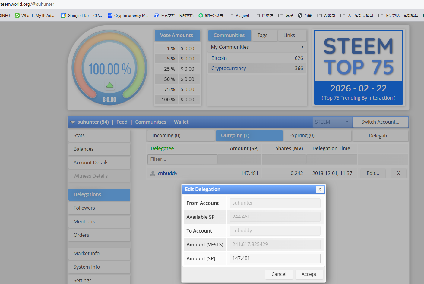 STEEM POWER 244.461(-147.481 STEEM)