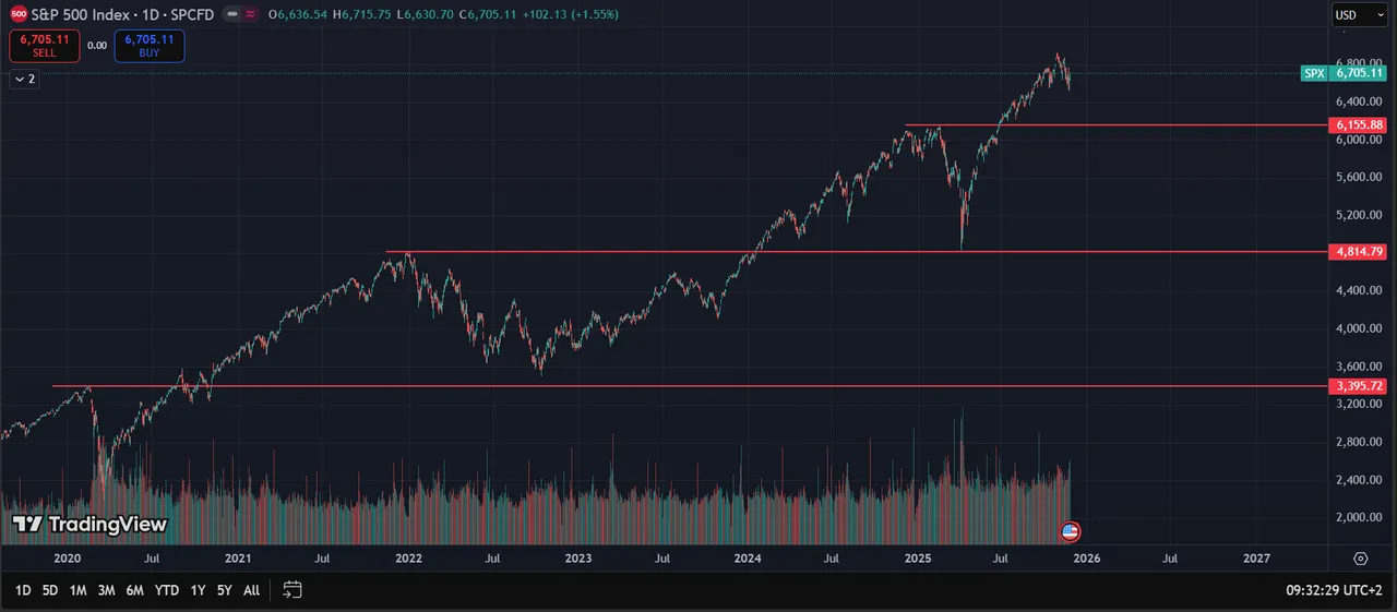 At the same time, Deutsche Bank analysts project the S&P 500 reaching eight thousand points by the end of 2026, roughly twenty percent above current levels.