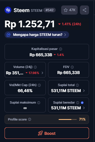 In this edition, I'll show you today's Steem price. It's clear that today's Steem price is very weak and has reached its lowest price. Perhaps seeing this might discourage us, but for those who are attracted to it and feel smarter and understand how crypto prices work, they will flock to the market as an investment.