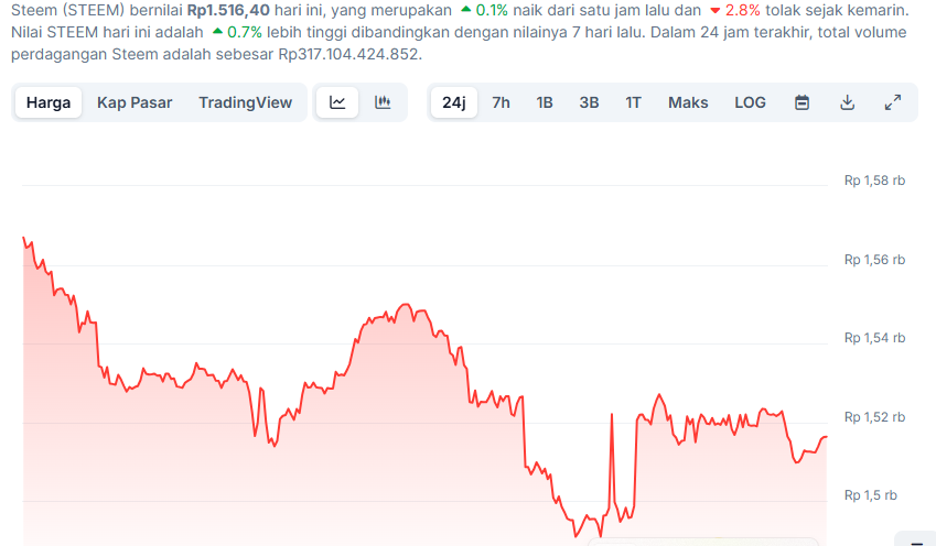 In the past two days, the price of Steem has decreased and remained at Rp. 1,516, so the price looks very low compared to a few months ago, but it would be good for those of us who want to make a profit to be able to collect Steem now by buying it.