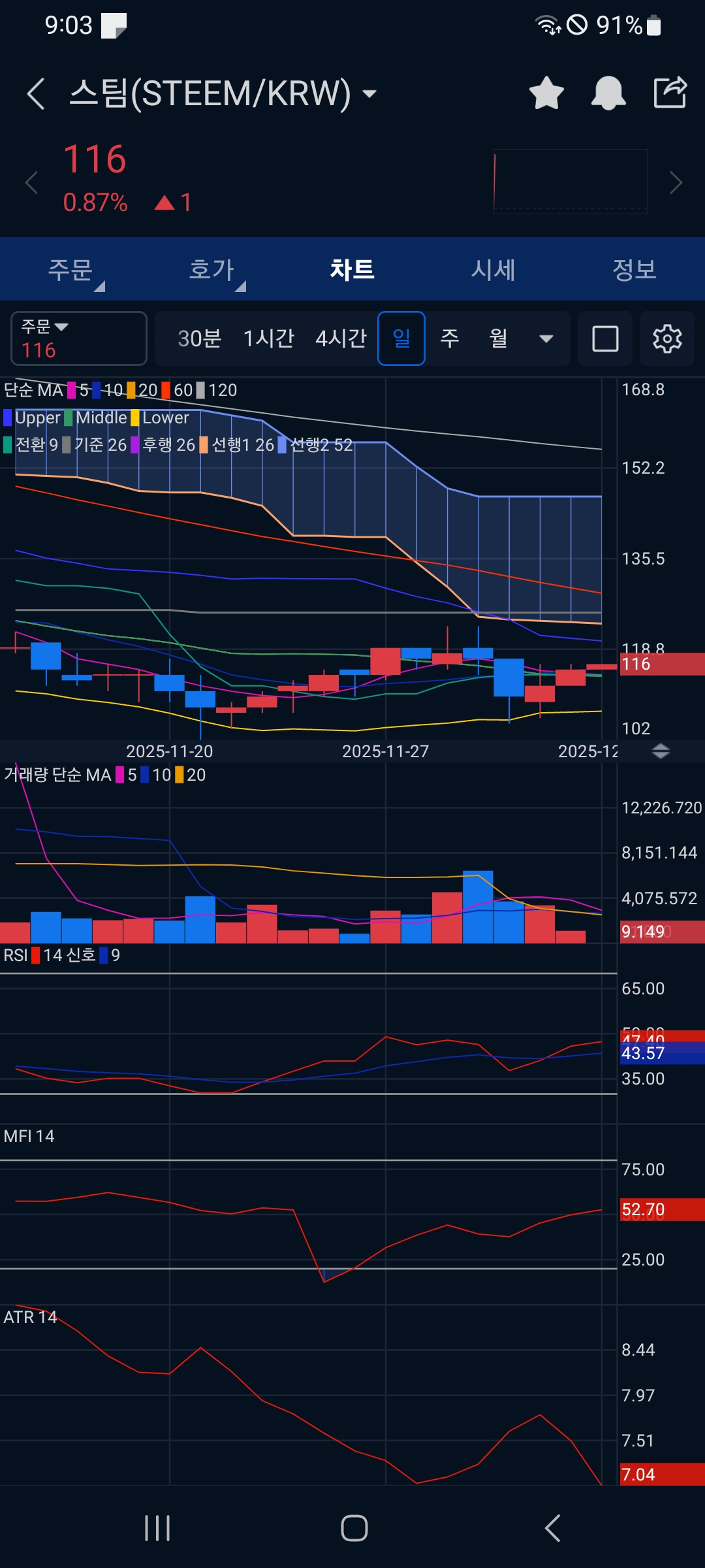 - 현재가(대략): 112–116 KRW(스냅샷 레이블 차이 있으므로 실가격 재확인 필요)